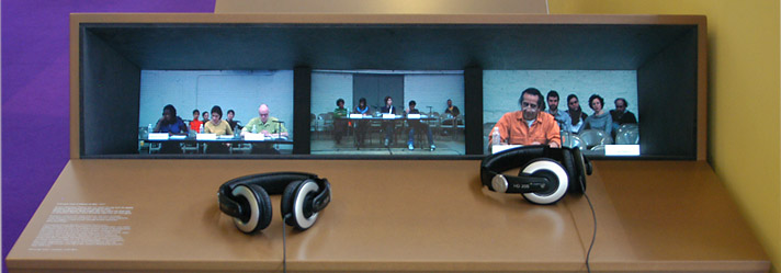 9 Scripts from a Nation at War is a 10 channel video installation that responds to conditions and questions that have arisen since March 2003, taking the U.S. context as an initial point of view. While 2003 marks the beginning of the invasion of Iraq by U.S. military forces, it is a conflict reaches backwards and forwards in history and memory, as a “long war” that has few, if any, boundaries.