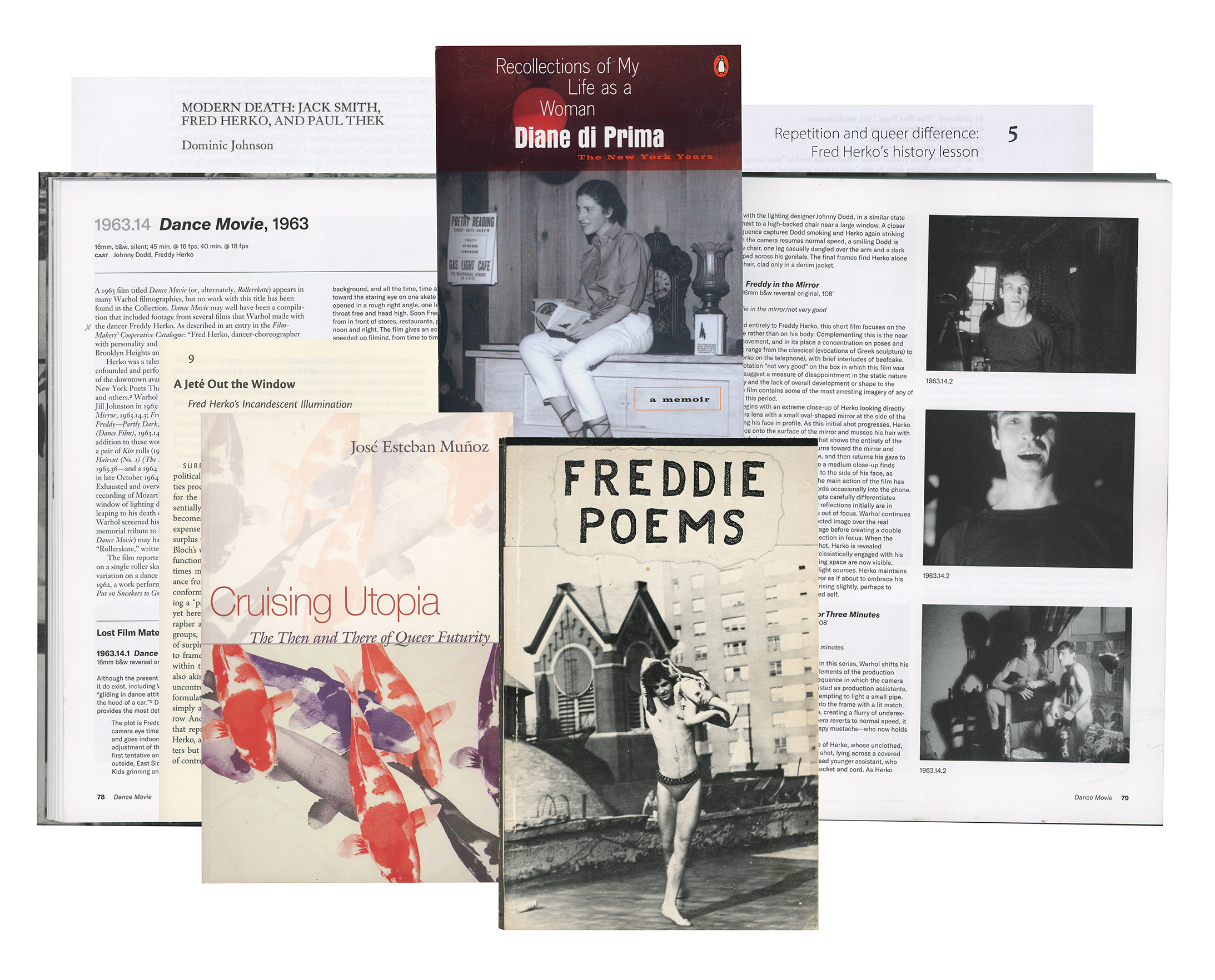 Although the current location of Dance Movie is unknown, accounts of it do exist, including Warhol’s evocative description in POPism of Herko “gliding in dance attitudes and looking as perfect as the ornament on the hood of a car.”
